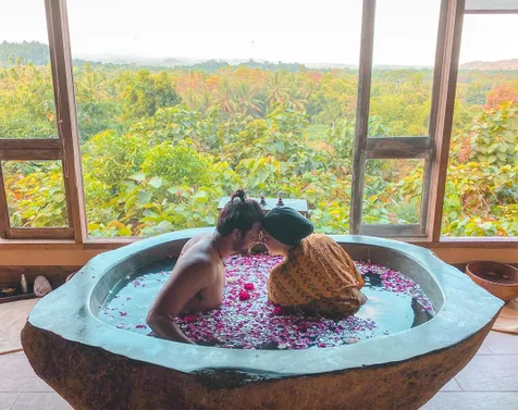 Mereka berdua memilih untuk menginap di sebuah resort di Plataran Borobudur Resort and Spa. Momen ini diabadikan mereka ketika sedang berendam di kolam bunga bersama. Terlihat romantis kan?