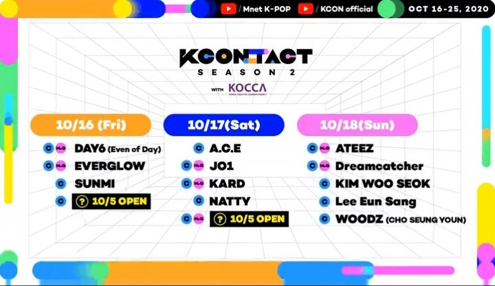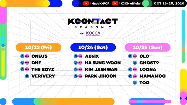 Acara bertajuk ‘KCON:TACT Season 2’ telah dijadwalkan akan terselenggara selama 10 hari yaitu pada 16 hingga 25 Oktober 2020. KCON:TACT 2020 melalui berbagai akun instagram resmi KCON, telah mengumumkan beberapa penyanyi solo ataupun grup idola yang akan meramaikan acara tersebut.