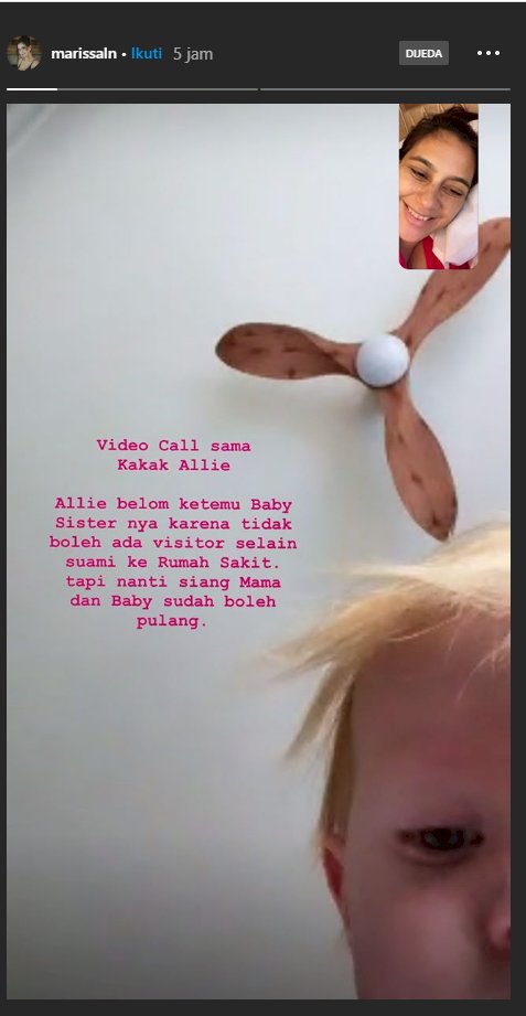 "Video call sama Kakak Allie. Allie belum ketemu baby sisternya karena tidak boleh ada visitor selain suami ke Rumah Sakit, tapi nanti siang Mama dan Baby sudah boleh pulang," tulisnya.