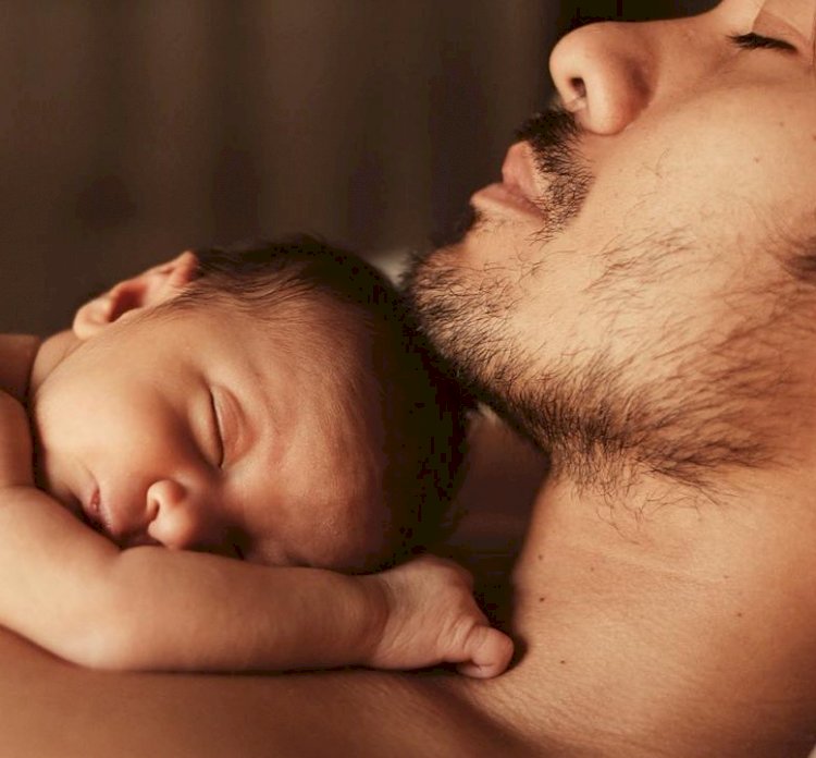 1. Chicco Jerikho tidur bersama sang buah hati dalam pelukannya. So sweetnya..