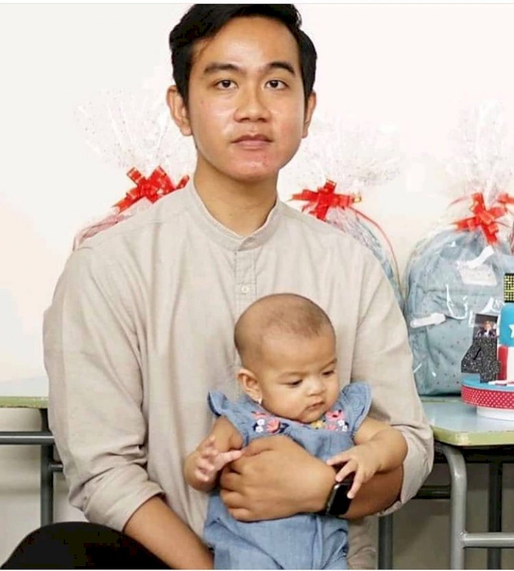 Lembah dipangkuan ayahnya, Gibran, terlihat menggemaskan, ya.
