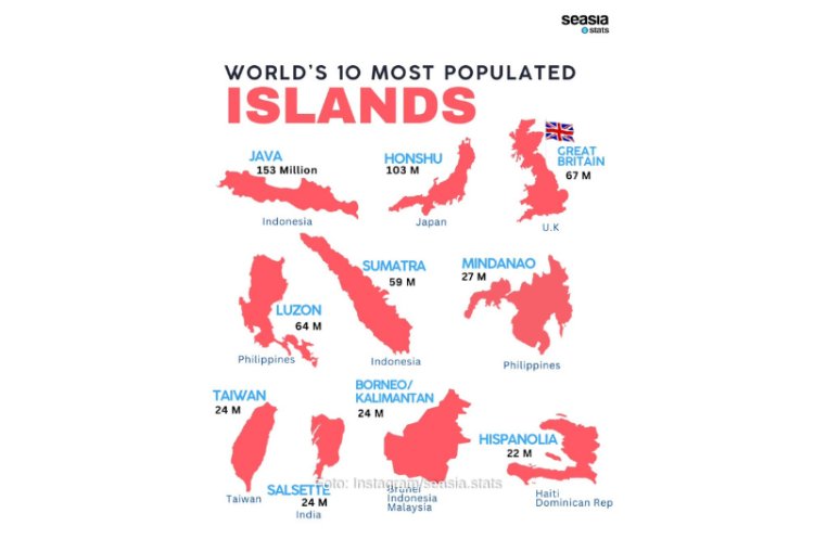 Melansir data yang dikeluarkan oleh @seasia.stats, Pulau Jawa yang memiliki 153 juta penduduk, merupakan pulau terpadat di Indonesia dan juga yang terbesar di dunia.