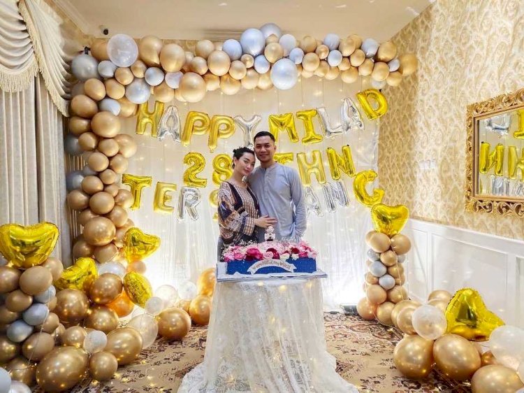 Yang menarik perhatian netizen justru hiasan balon di dinding yang berbunyi "Happy Milad 28 Tahun Tersayang". Banyak netizen yang bertanya-tanya kebenarannya.